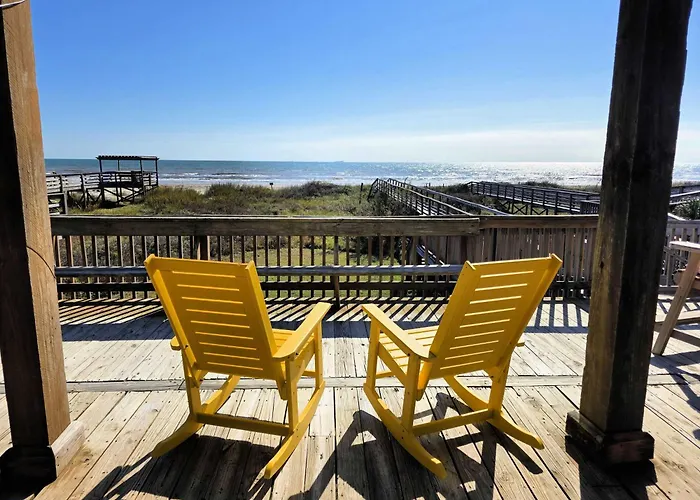 Situated nearly a 25-minute walk from Bridge Harbor Yacht Club Marina, the 3-bedroom Beachfront Retreat - Sunrises, Surf, Swimming! Surfside Beach villa features a patio with views of the sea.
